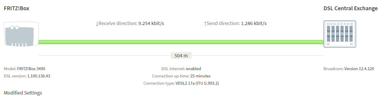 - Nach Ausfall DSL für 10 Minuten nun Resync mit nur 10 Mbit Download (anscheinend auch Anzeige Entfernung zum Router weiter als vorherm bisher 200m nun 500m). Es gibt am Haus nebenan Bauarbeiten, aber eher im Hinterhaus bzw. vorne nur Container und eher keine Erdarbeiten, aber ich erwähne es nur.