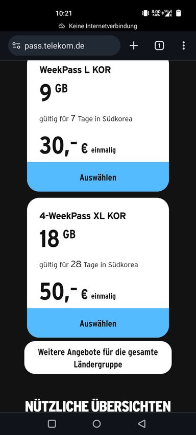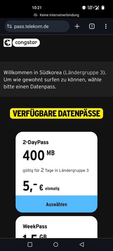 Bekomme ich, wenn in Südkorea und dann auf Datenpass.de auch automatisch die entsprechenden Datenpässe
