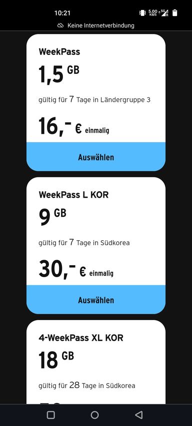 für einen Aufenthalt in Südkorea würde ich gerne einen Datenpass buchen.