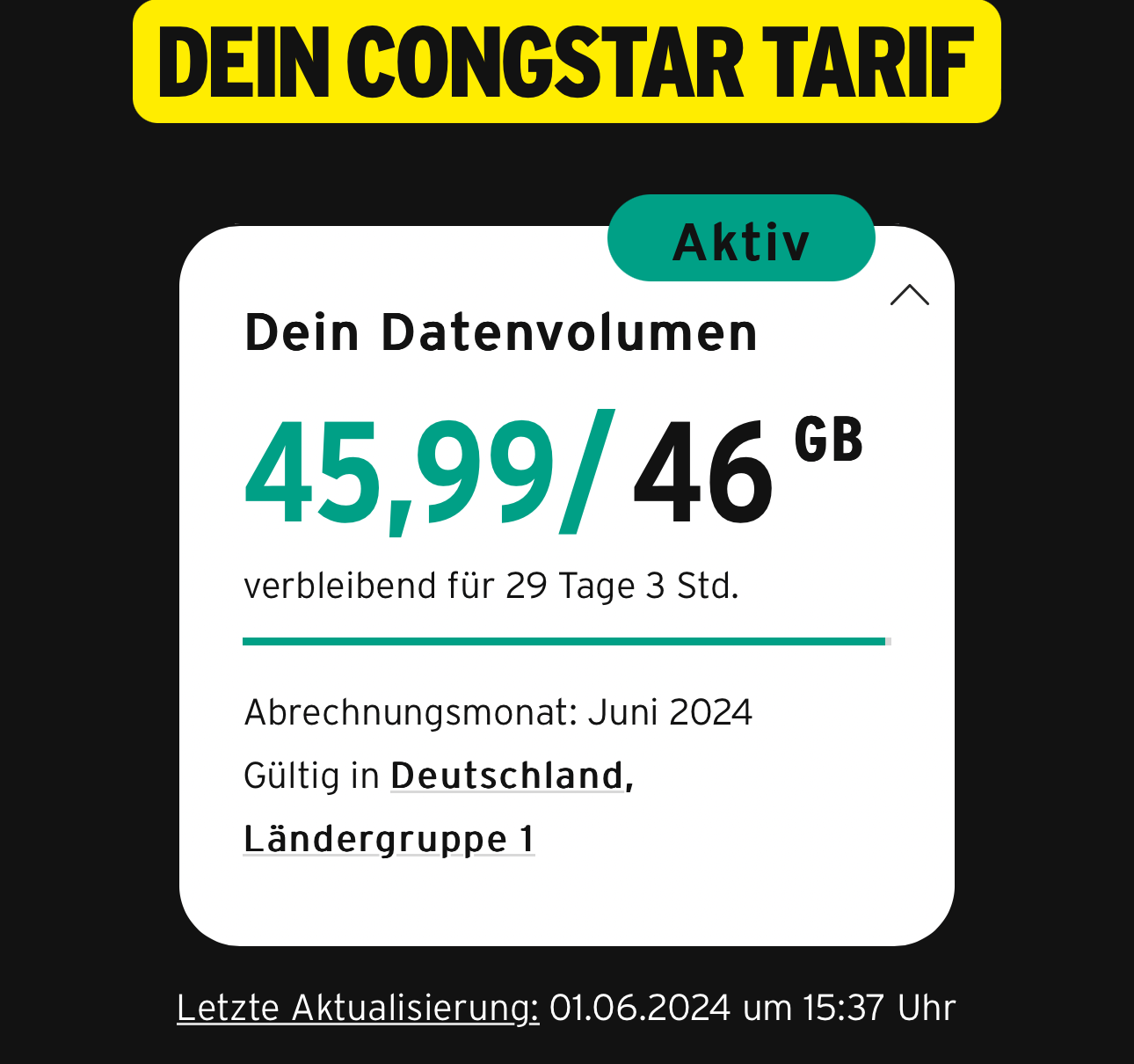 Ich habe in der App die Anzeige, dass ich innerhalb des Tages 3 GB aufgebracht haben soll.