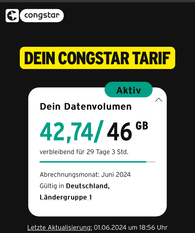 Es muss für den Kunden irgendwo nachvollziehbar sein, wieviel Datenvolumen verbraucht wurde. Congstar muss es ja auch für sich messbar machen, da sonst eine Abrechnung nicht möglich wäre. Der Kunde muss darauf vertrauen, dass Congstars Messung richtig ist, ohne selbst prüfen zu können??