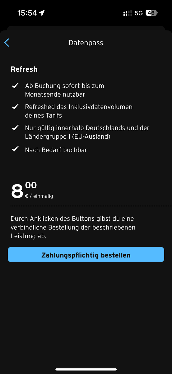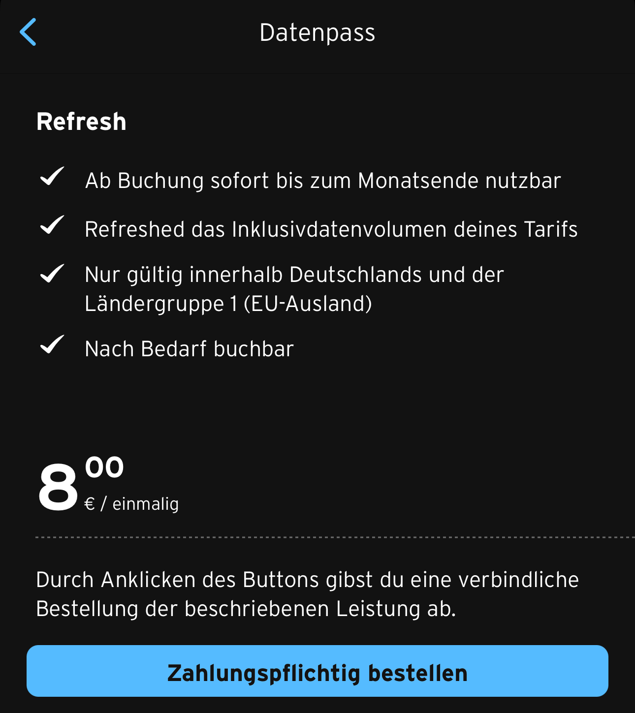 Seit heute kann ich in der App unter „Mehr Datenvolumen benötigt“ eine neue Option wählen.