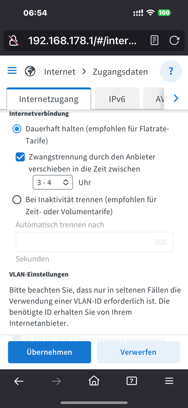 Genau, habe ich auch bei meiner FRITZ!Box 7690 auf 3-4 Uhr festgelegt und da ist dann auch eh mein WLAN am pausieren 😉 Die Möglichkeit dazu findet sich übrigens unter Internet...Zugangsdaten und dort unten Verbindungseinstellungen..