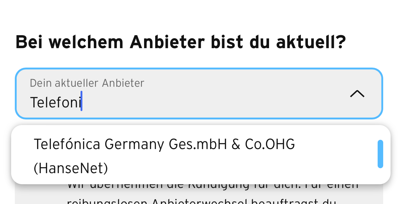 Beim Anbieterwechsel im Formular der Bestellung finde ich allerdings nicht ansatzweise den Anbieter O2.