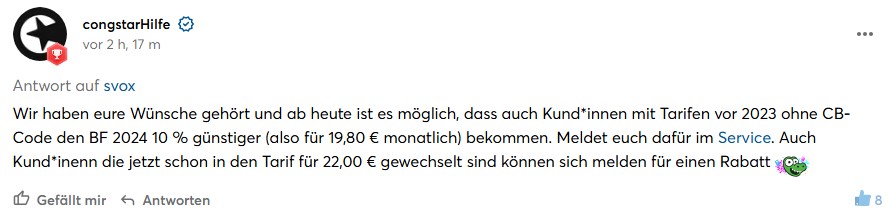 Alles anzeigenGuten Abend liebes Congstar Team,