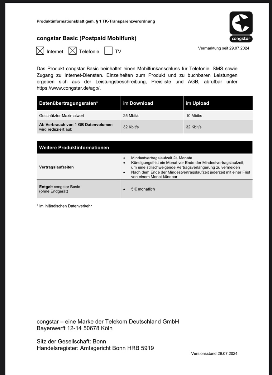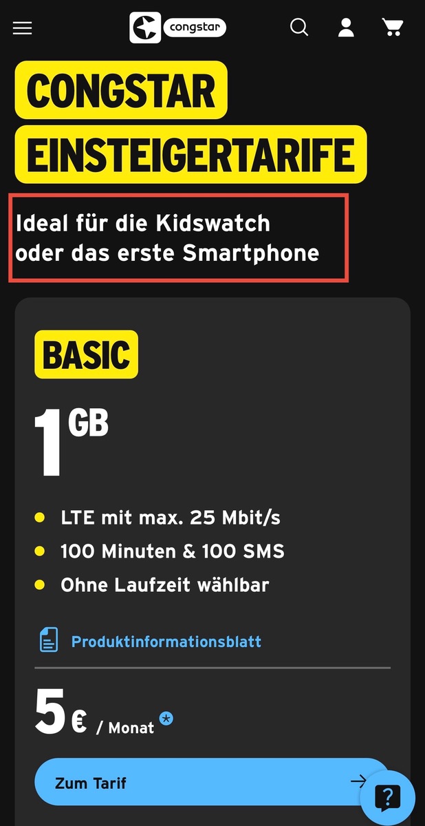 2. Ist der Congstar Basic-Tarif der einzige Tarif für die Kidswatch? Sind die 1 GB für einen Monat oder für die komplette Laufzeit. Weil das steht nirgends in der Beschreibung.