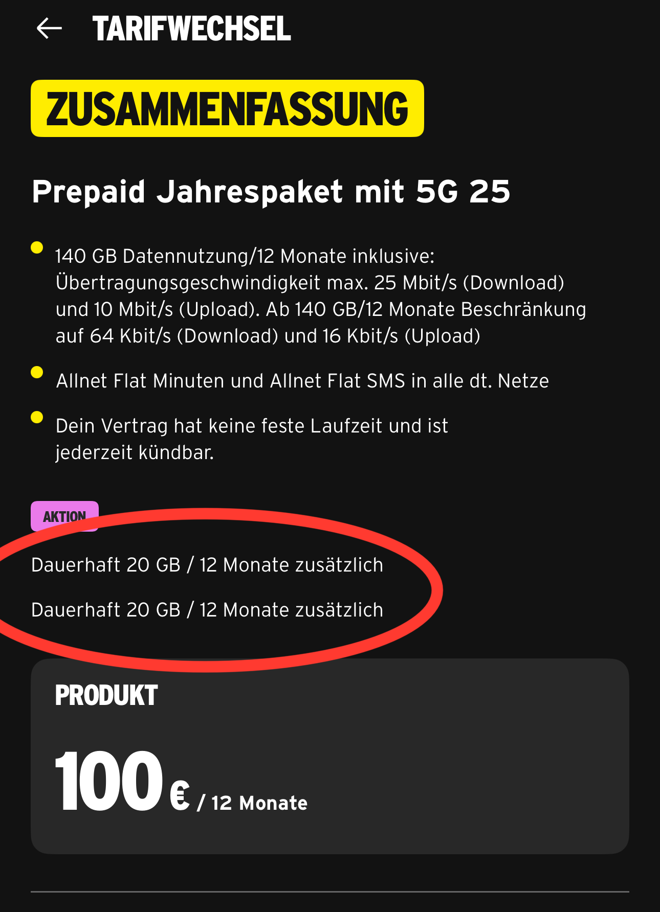 Bevor ich das wieder vergesse 🙈. Der doppelte Text kommt durch die Anwendung zweier Kampagnen (2x 20 GB) mit gleichem Text zustande. Ist doof gelöst und war kurzfristig anders nicht machbar.