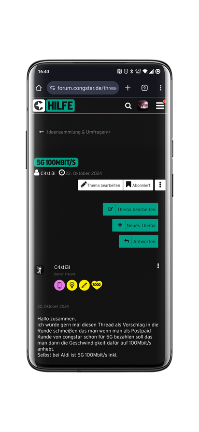 Naja, die Forensoftware gibt es (noch) nicht her. Und falls das congstar-Team es nicht einstellen kann, kann sie vielleicht ein feature request beim Hersteller anfragen?