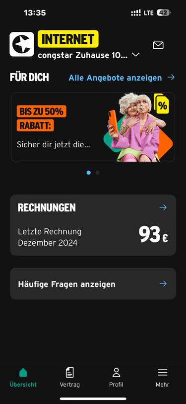 Ich nutze die congstar App in aktueller Version auf einem iPhone 14 PM, iOS 18.3.
