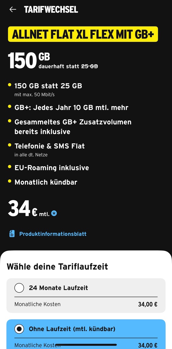 ich habe mir heute im Kundenportal die Angebote zum Tarifwechsel angesehen.