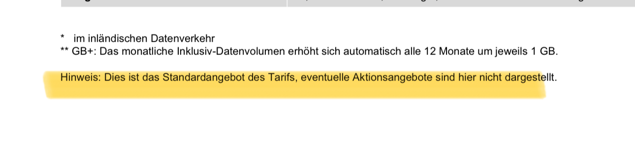 ZitatHinweis: Dies ist das Standardangebot des Tarifs, eventuelle Aktionsangebote sind hier nicht dargestellt