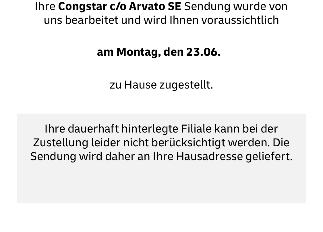 Und zu dem Post vorher, Nein, egal was man versucht, Lieferungen an Packstationen oder Filialen bei Congstar Versand auf keine Weise möglich sind.