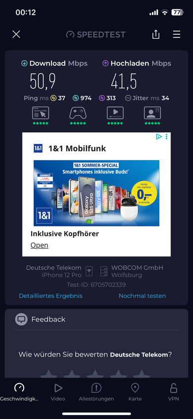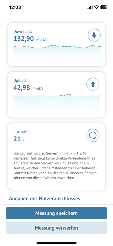 Moin Moin!!! Habe seit 11.07.2025 den Zuhause 250 flex Tarif. Die ersten Tage war die Geschwindigkeit laut Fritz Box Empfangen: 280 Mbit/s/Senden: 45,5 Mbit/s Speedtest immer zw. 200-250 . Jetzt eine Woche im Urlaub gewesen und die Daten laut FRITZ!Box bei Empfangen: 114,1 Mbit/s