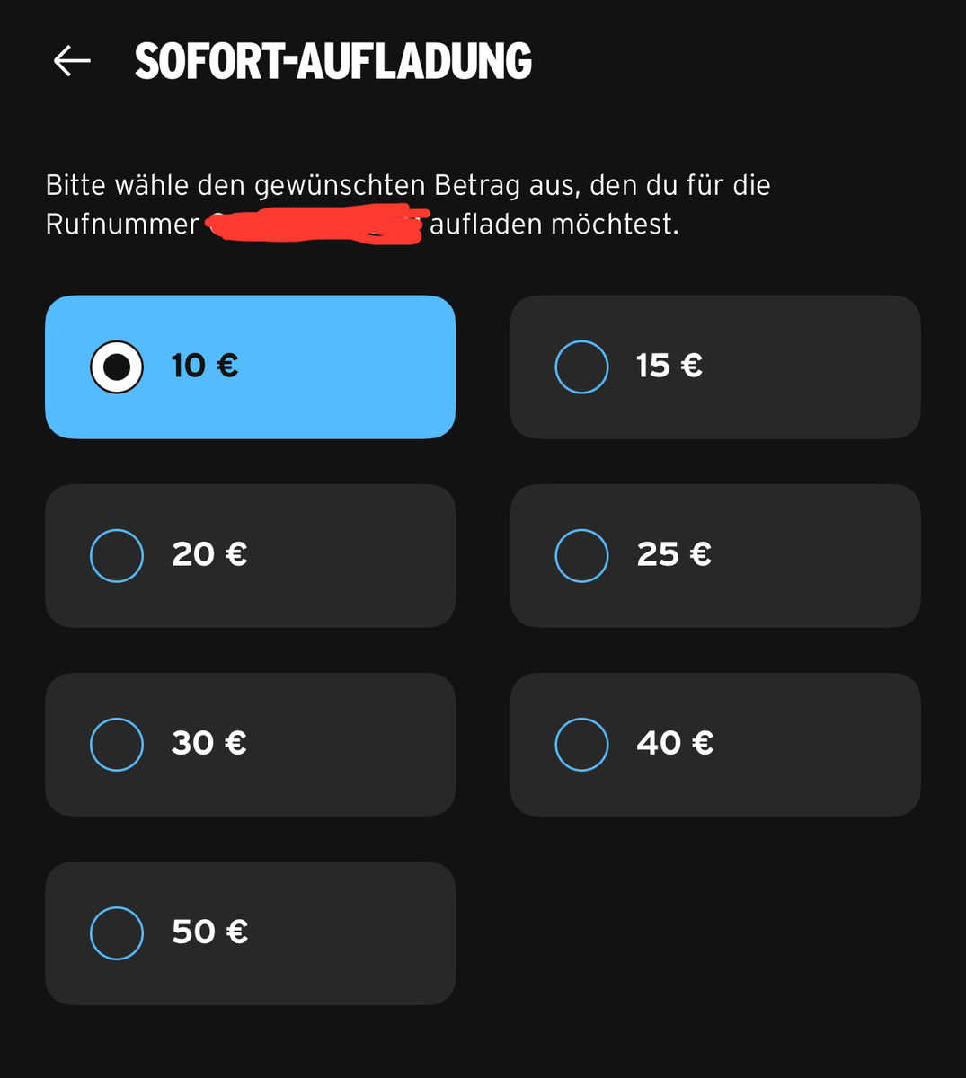 Wo ist die Möglichkeit, andere Beträge auszuwählen hin? Wie kann ich am einfachsten genau 100€ aufladen?