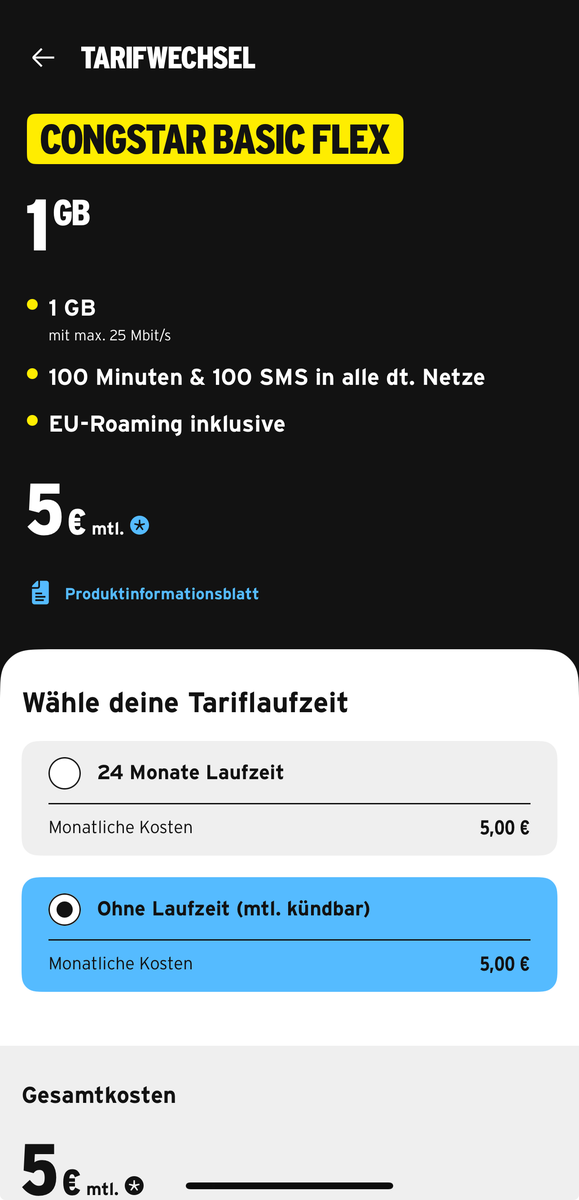 2. Kann ich sicherstellen, dass der vorübergehend genutzte Postpaid-Vertrag (Congstar Basic) direkt wieder in einen Prepaid-Tarif gewandelt werden kann, ohne 24 Monate Vertragsbindung? Worauf muss ich da achten? Beim Tarifwechsel in der App sieht man nicht, ob der Tarif mit oder ohne 24-Monate Laufzeit ist (jedenfalls nicht, bevor ich weiter klicke).
