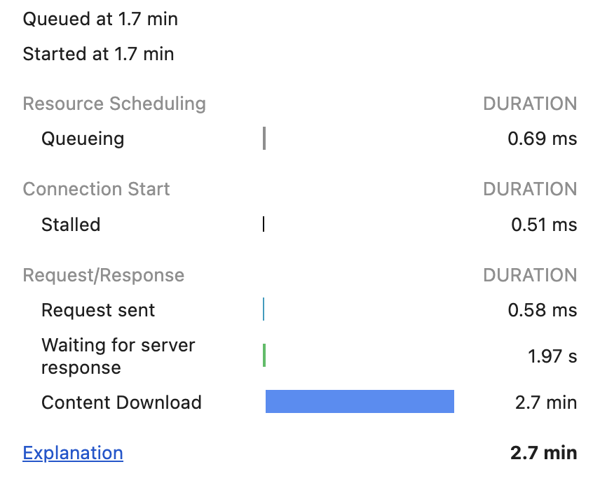Einige Anfragen für kleine Dateien dauern über eine Minute. Ich habe etwas recherchiert und es scheint, dass das Netz der Deutschen Telekom das Problem ist.