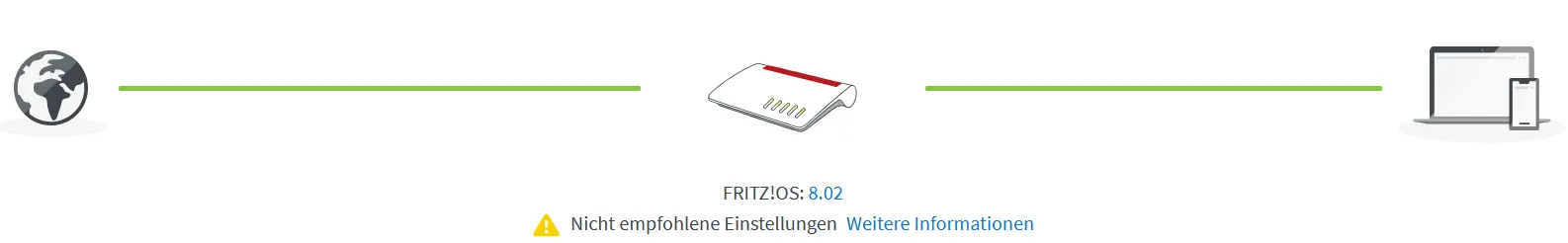 Die Grafik bei der DSL Übersicht im Routermenü zeigt einen roten Balken von „außen“ zum Router und einen grünen Balken vom Router zu meinen angemeldeten Geräten. Nützt aber ja nichts.