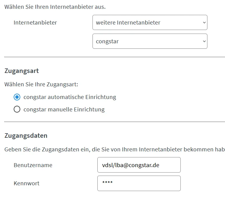 Hast du dort mal Benutzer und Passwort eingetragen? Zwar müsste der BNG das selbst erkennen, aber schau mal danach. Achte auf "automatische Einrichtung" und "Manuelle Einrichtung".
