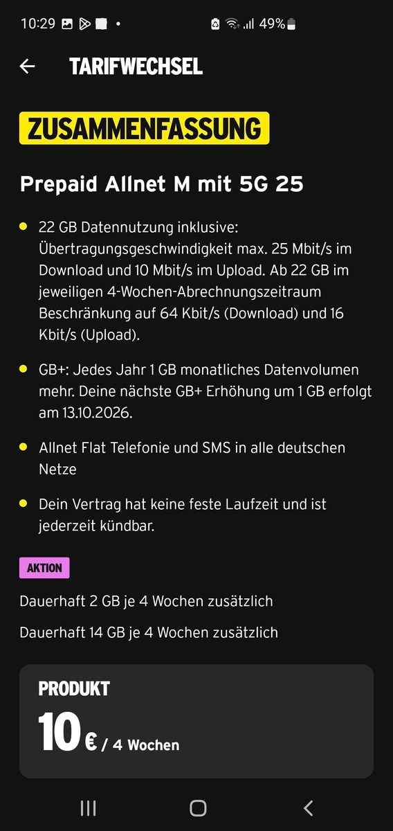 gestern bin ich in den Tarif "Prepaid Allnet M mit 5G 25" gewechselt. Die Zusammenfassung der Tarif-Details habe ich angehängt.