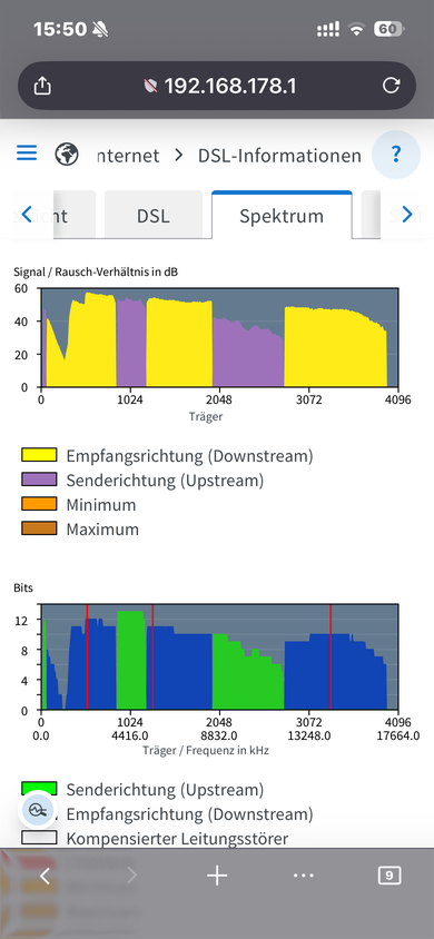 Kein DSL Signal () Telefonie ( ) Bandbreite (x) Abbrüche ()