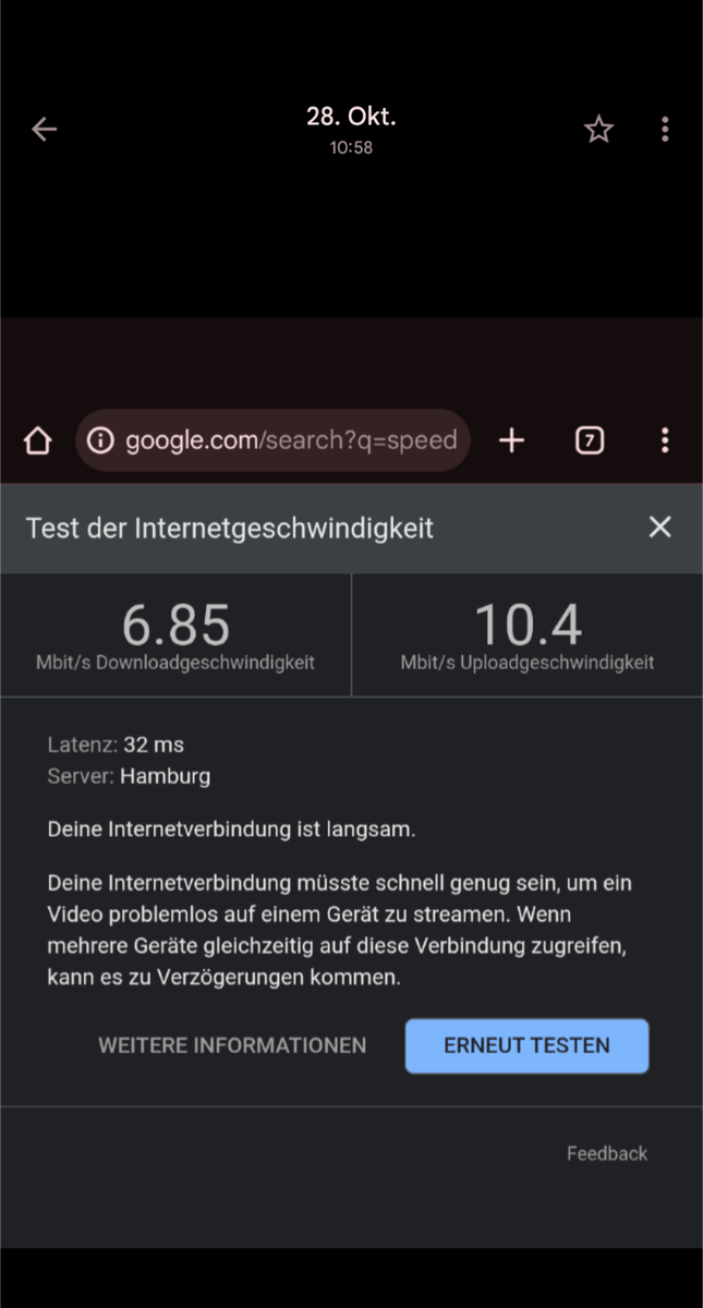 Leider bekomme ich dauerhaft weniger als 10mbit/s, egal was ich tue.