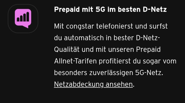 congstar bewirbt die Prepaidtarife mit 5G (für mich ALLE Prepaid Tarife haben 5G).