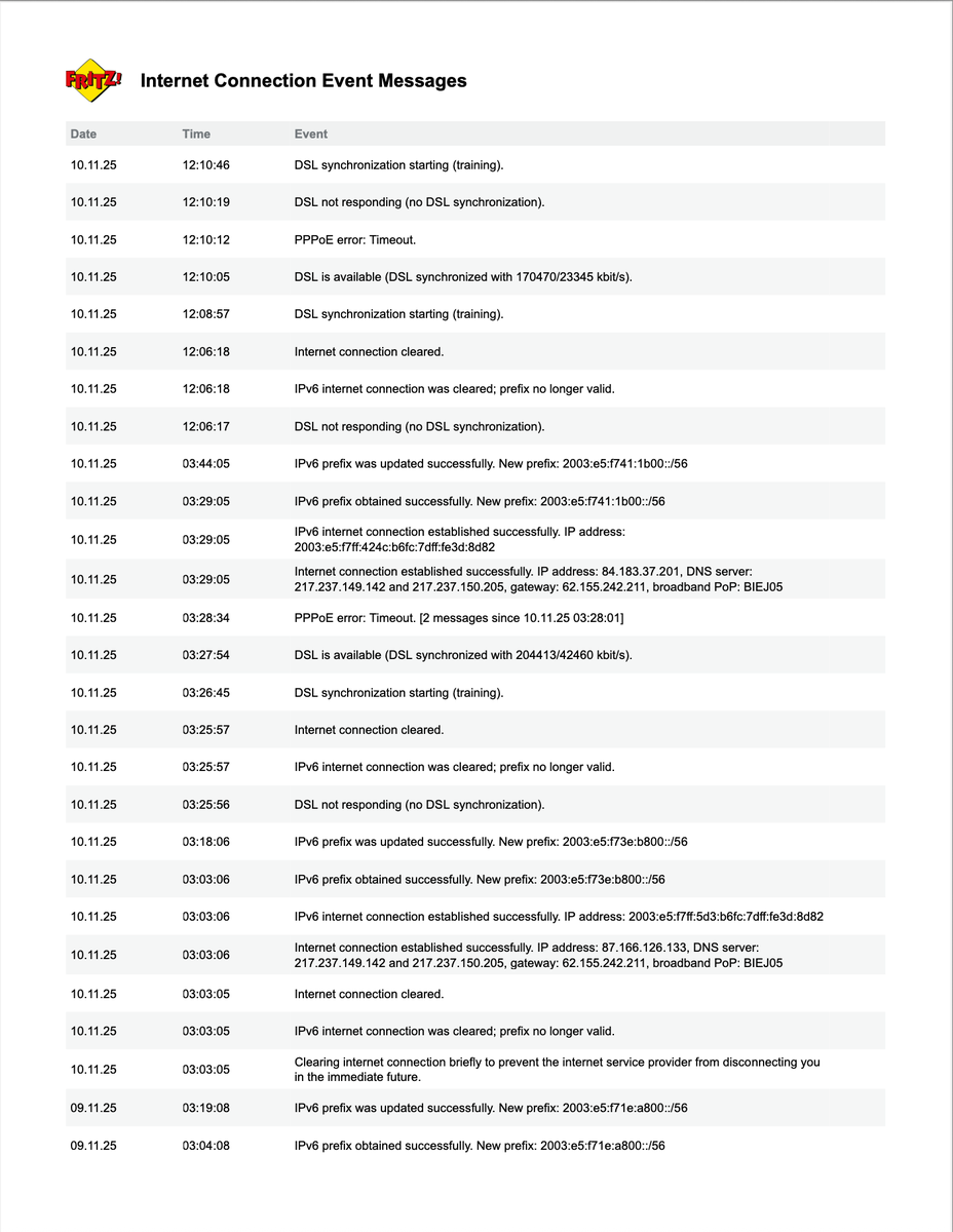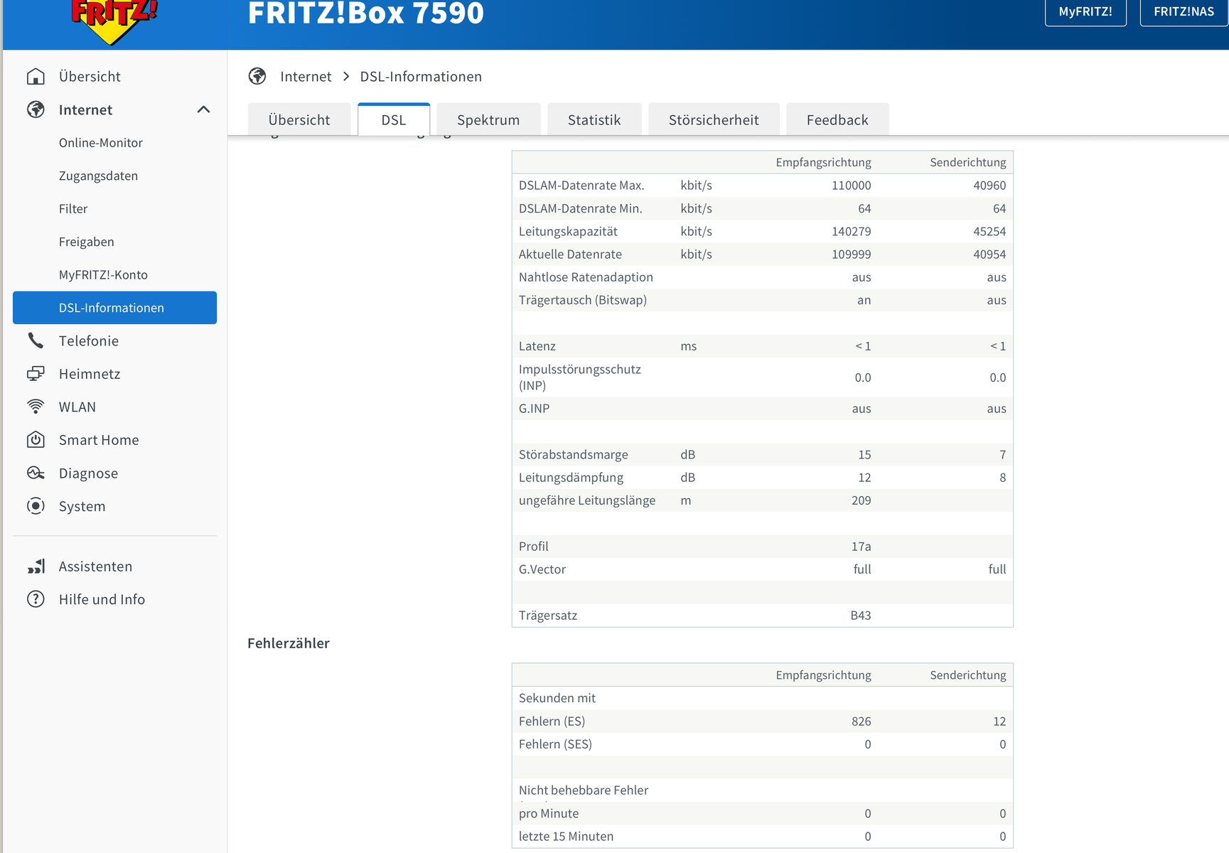 Im Anhang habe ich Screenshots aus dem Router-Dashboard hinzugefügt (Protokolle, DSL-Spektrum und Statistik).