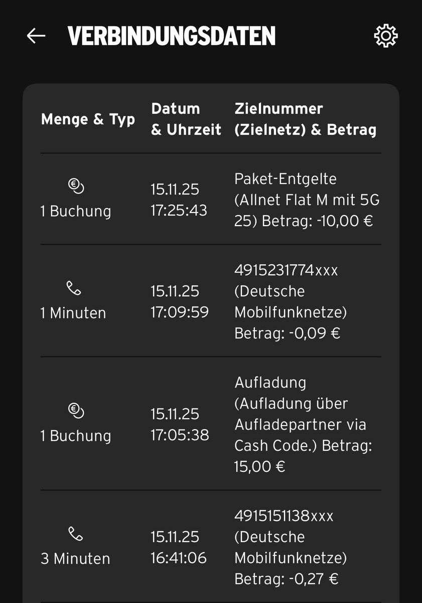Telefonie wird berechnet trotz Prepaid Allnet xl