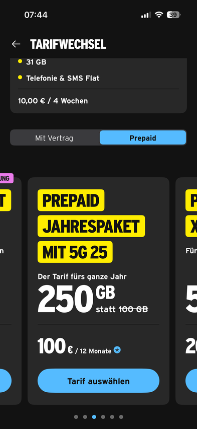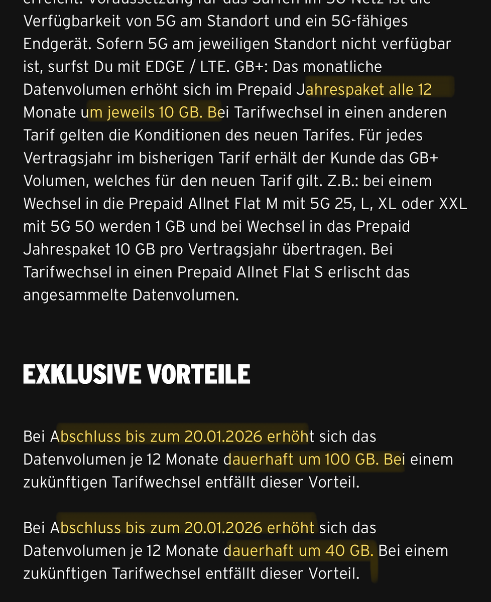 Ich habe eben in der App entdeckt, dass Bestandskunden den Jahrestarif bis zum 20.01.2026 mit 240GB zu 100,- buchen können. Für Neukunden gilt weiterhin das Angebot von 180GB zu 100,-