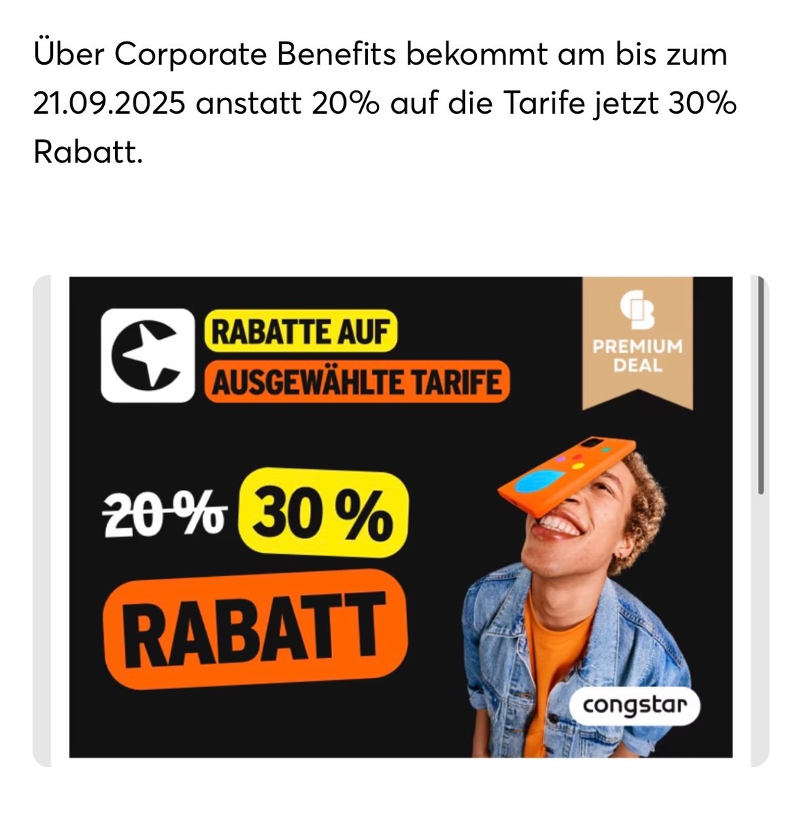 Ergänzend möchte ich darauf hinweisen, dass es im September ein zeitlich begrenztes Angebot gab, bei dem man 30 % Rabatt auf den Vertrag erhalten konnte. Genau dieses Angebot war der ausschlaggebende Grund, warum ich mich trotz eines noch laufenden Vertrags bei o2 (bis Februar 2026) für einen vorzeitigen Wechsel zu congstar entschieden habe. Aktuell zahle ich dadurch sogar zwei Mobilfunkverträge parallel, was ich bewusst in Kauf genommen habe – im Vertrauen darauf, dass die beworbenen Konditionen langfristig Bestand haben.