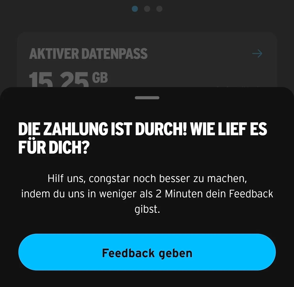 ich habe gerade die congstar App geöffnet und direkt einen Hinweis bekommen mit dem Text