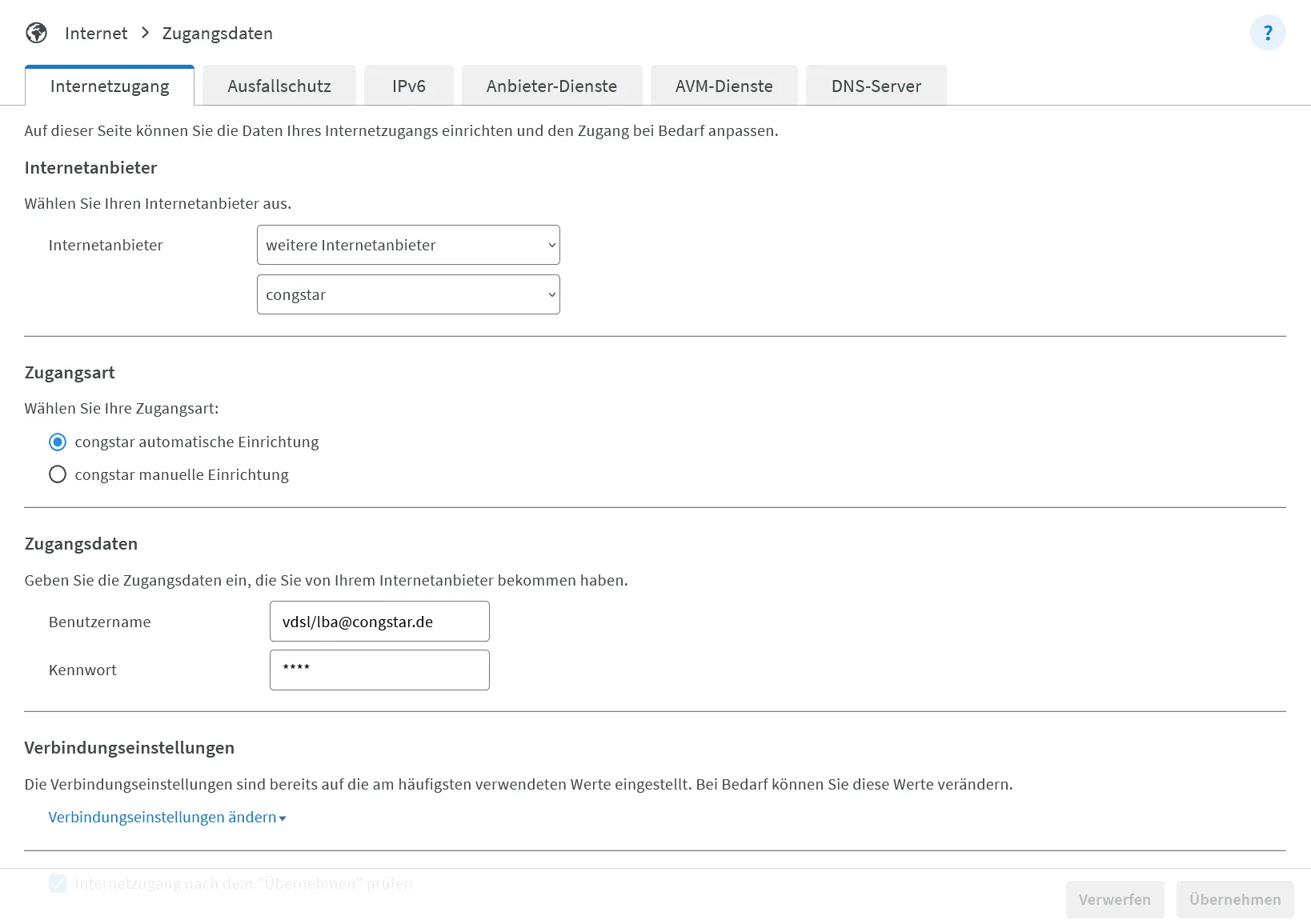 ich nutze mit einem anderen Router bereits DSL mit 100 MBit Flex bei Congstar, will nun jedoch die Fritzbox 7430 einrichten. Allerdings verlangt diese Fritzbox Zugangsdaten. Bei Benutzer und Passwort hatte ich „congstar“ eingegeben (hatte ich in einer Anleitung in der App gelesen). Dies hat jedoch nicht funktioniert.