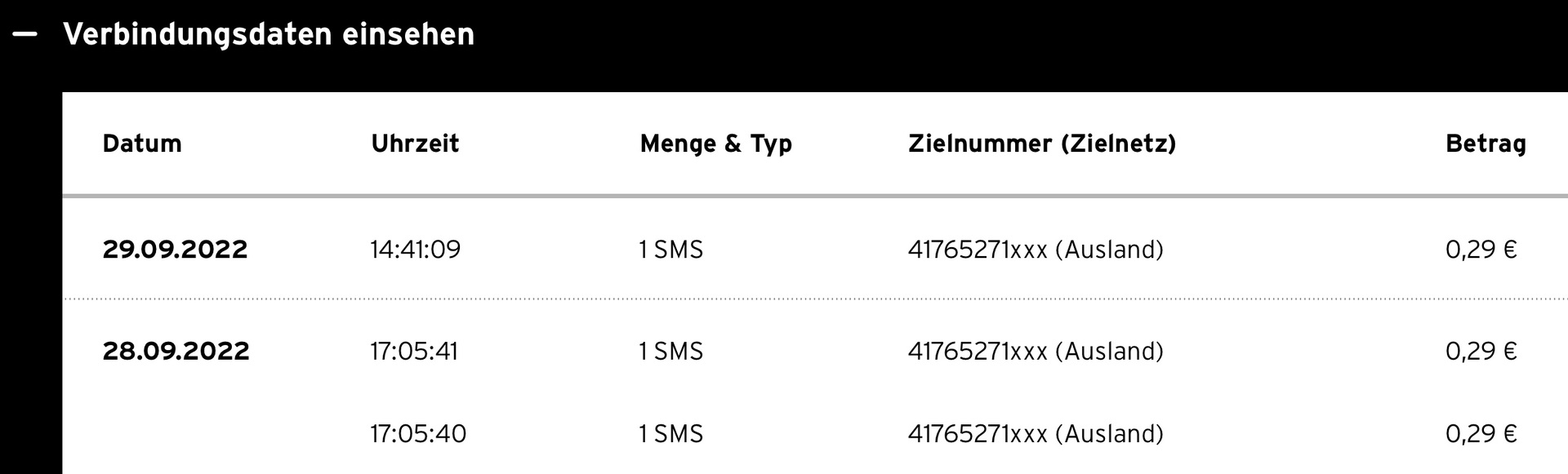 mehr aus Zufall bin ich gestern auf den Punkt "Verbindungsdaten einsehen" gegangen und dort fielen mir drei SMS auf.