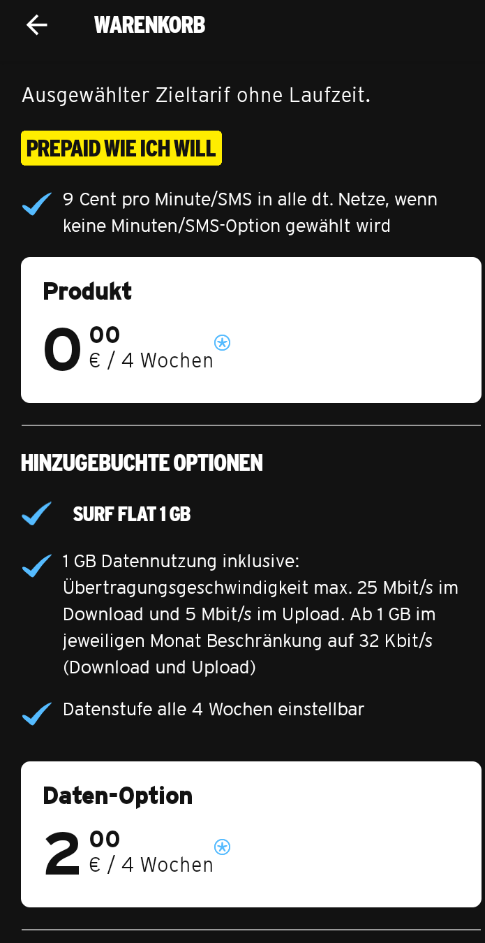 Prepaid-Tarif mit Allnet-Flat und kleinstmöglichem Datenvolumen, wie dem "Prepaid wie ich will"