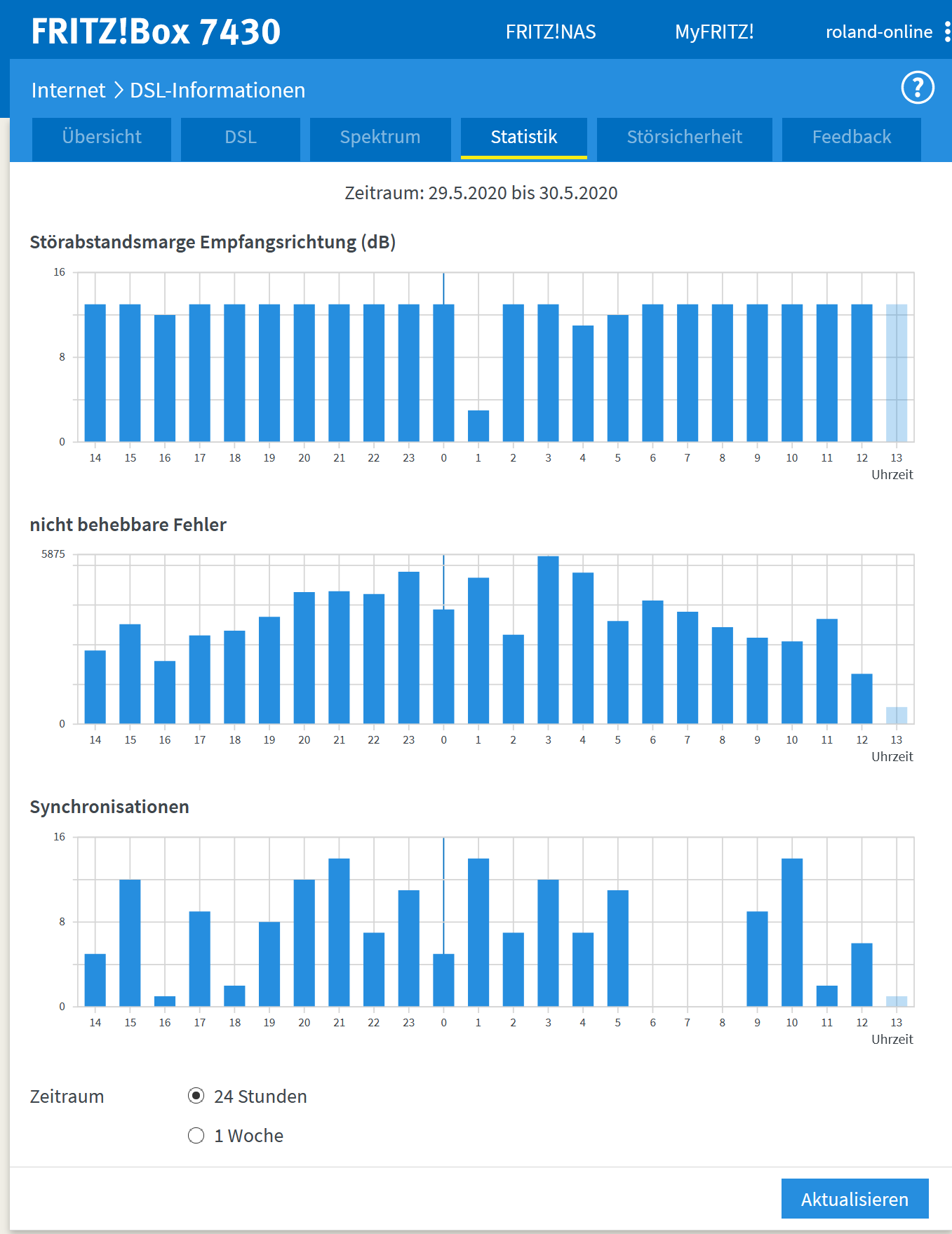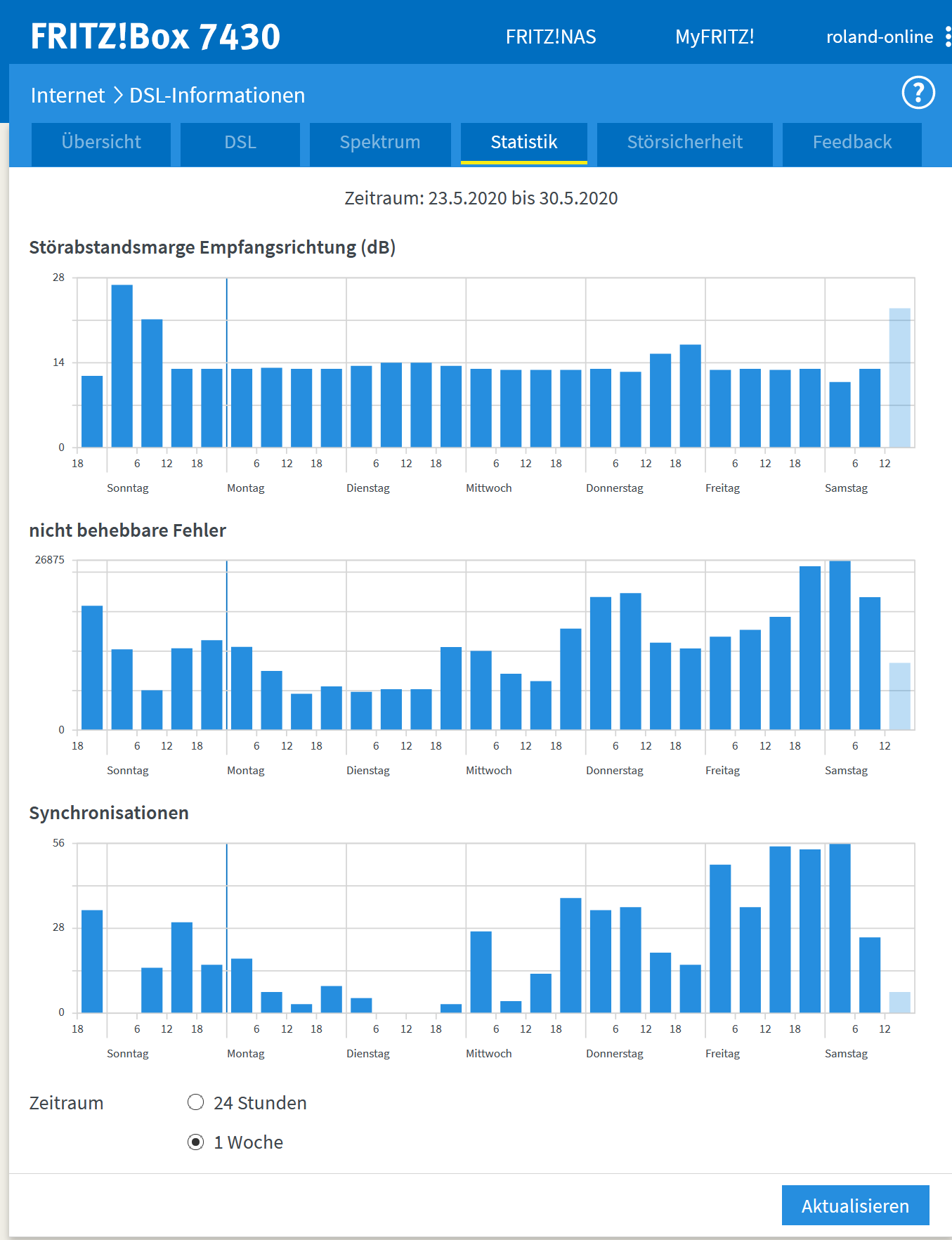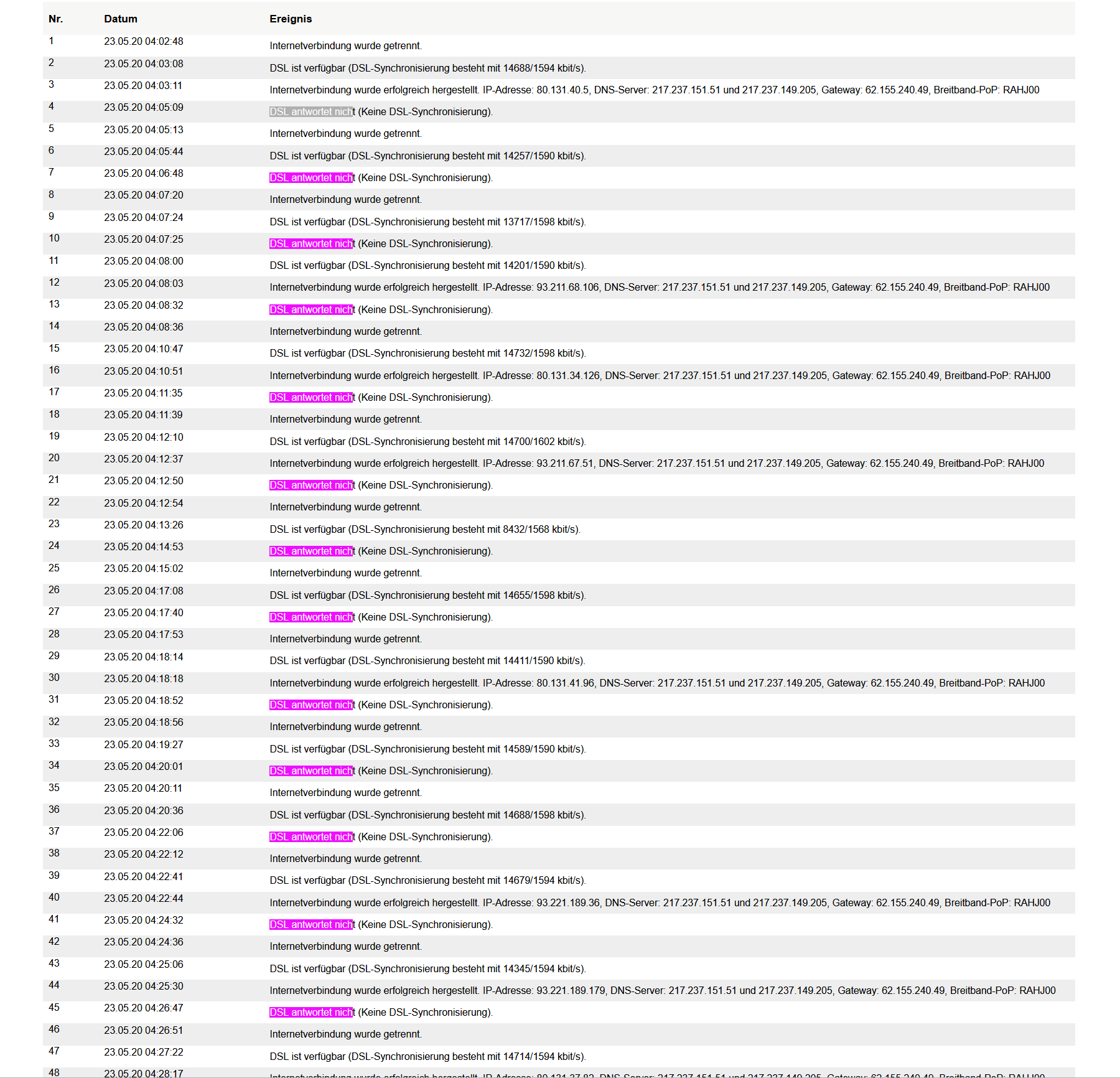 Hier noch ein paar Details: (FRITZ!Box-Info: Nutzungs- und Verbindungsdaten vom 18.05.2020 bis 24.05.2020)