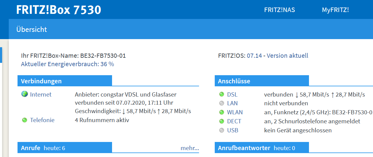 - Die (bei C. bestellte) Fritz!Box 7530 ist in KW 26 für lokale/interne WLAN/DECT/DSL Einstellungen bereits verfügbar.