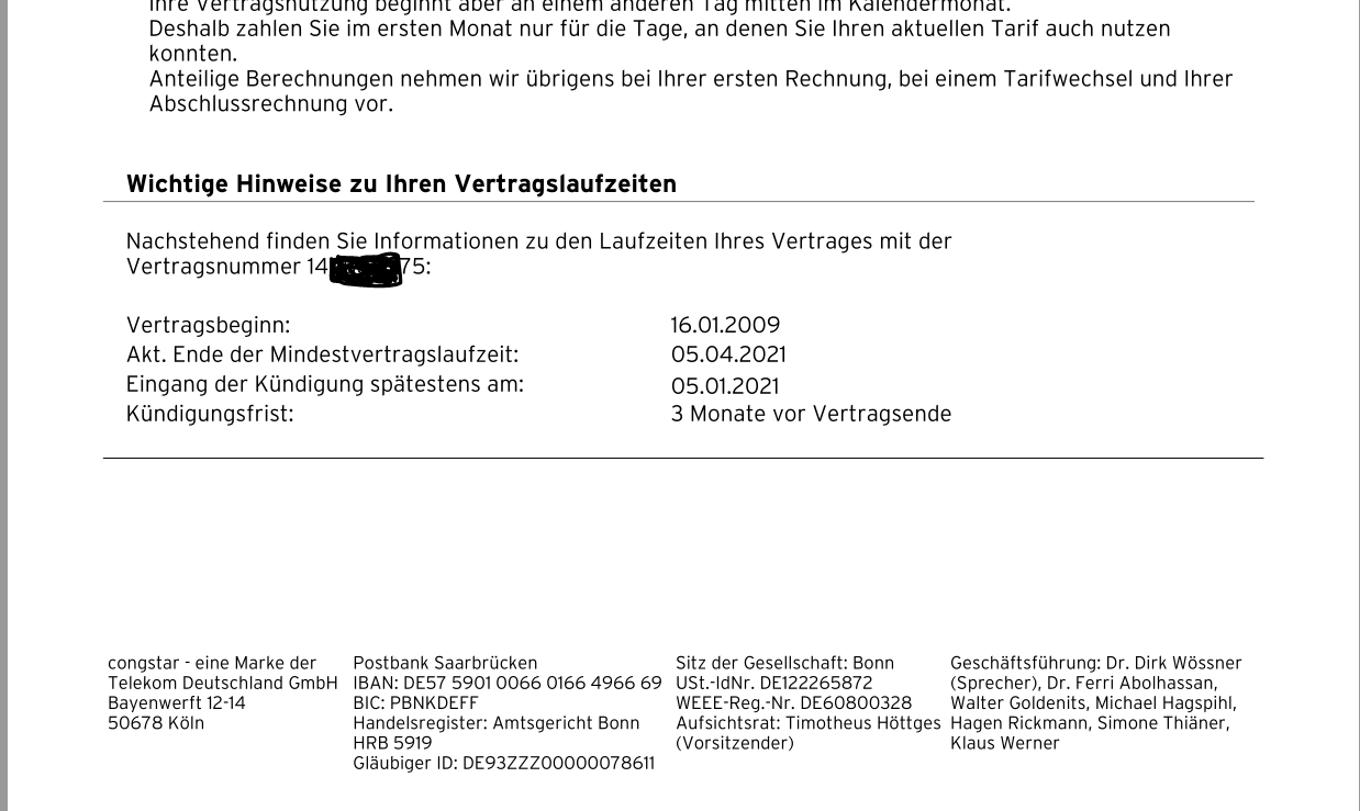 Ist auf der Rechnung immer noch vorhanden mit Laufzeit & Kündigungsfristen.