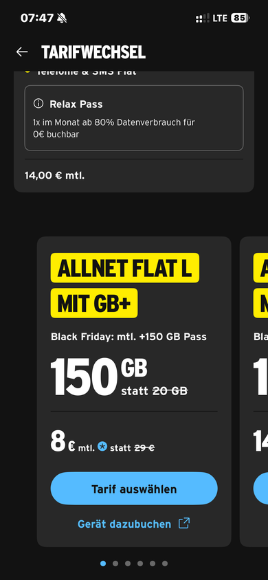 Ich geh mal die Tarife durch die mir zum Wechsel angeboten werden in der App: