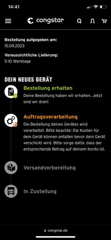 Also bei mir ist nur der Status beim Pixel umgesprungen, beim IPhone ist immer noch der Status, das es eine Verzögerung gibt ohne Angabe eines Lieferzeitraums.