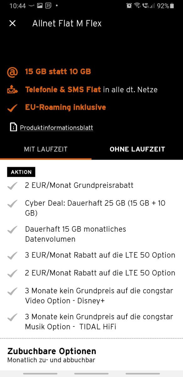 JensKoje in der Laufzeitvariante zahlst du 20,00€ für den Tarif, bei Flex liegst du bei 22,00€ - wir können dir also die 25Gb inkl LTE50 für 22,00€ einstellen. Möchtest du das?