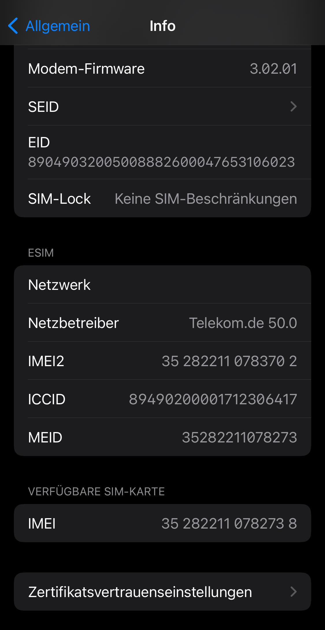 ZitatKomisch ist das du schon Netzbetreiber Version 50 hast. Bei mir ist es noch auf 49. Sollte eigentlich bei mir dann aktualisiert werden sobald ich auf Info gehe. Auch die Modem Version ist bei dir neuer. Ich habe iOS 15.3.1.