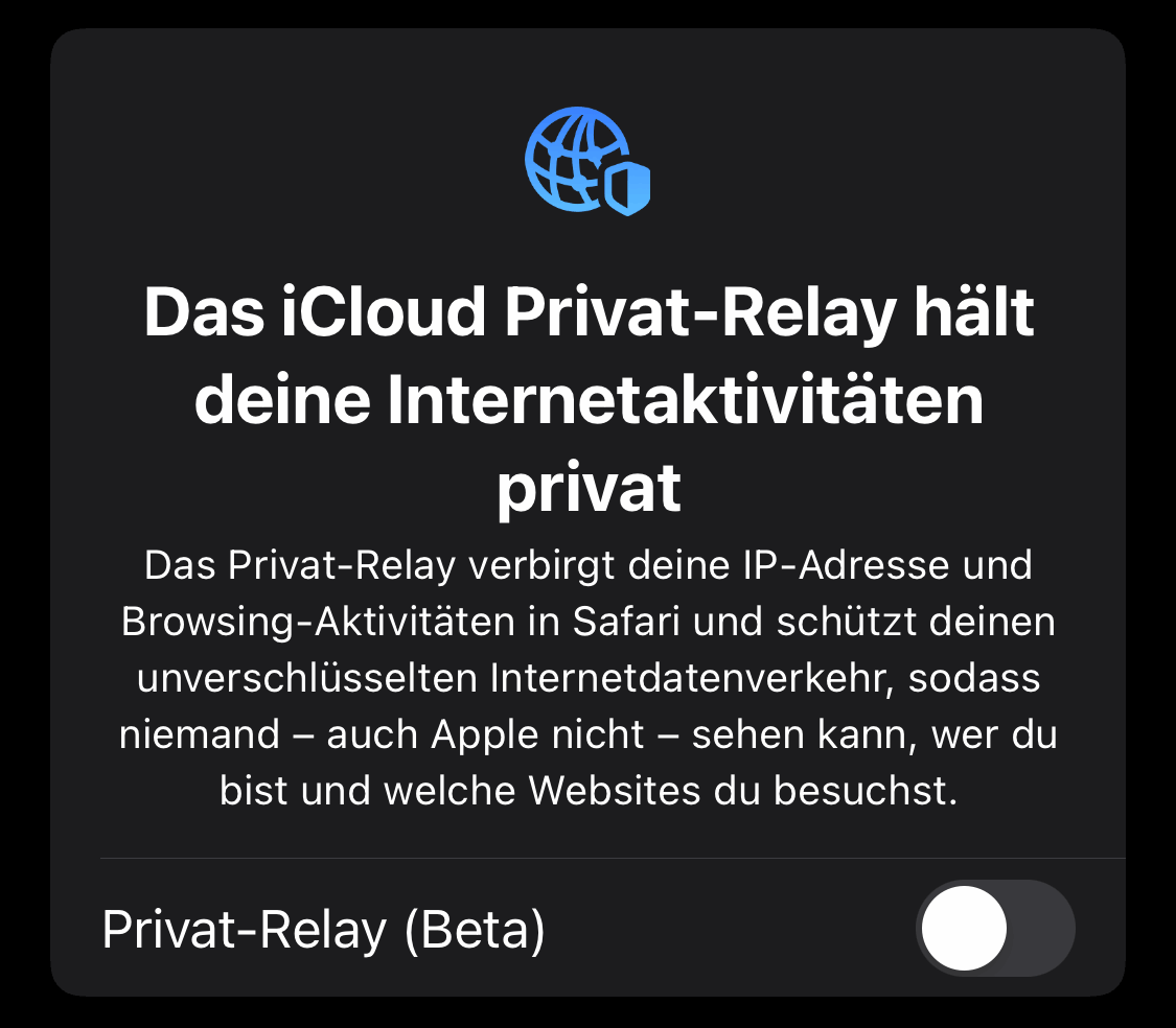 Ich nutze keine AdBlocker, das iCloud Private-Relay von Apple habe ich auch abgeschaltet.