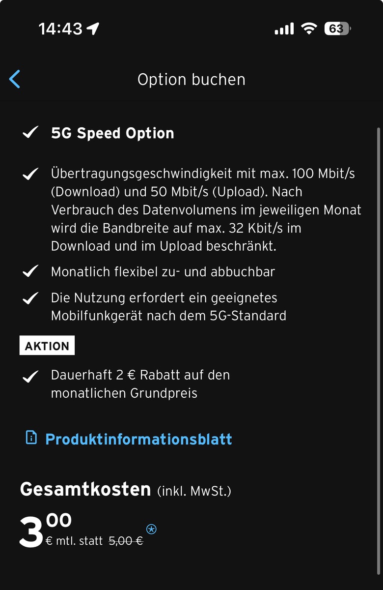 Mit der 5G Speed Option verändert sich ja die Obergrenze auf dem SIM Karten Profil, wäre interessant zu Erfahren ob die Probleme danach verschwunden sind, wenn ja würde ich die Option gebucht lassen.Wenn mir das ganze so gar nichts bringt möchte ich nicht unnötig Geld dafür ausgeben.