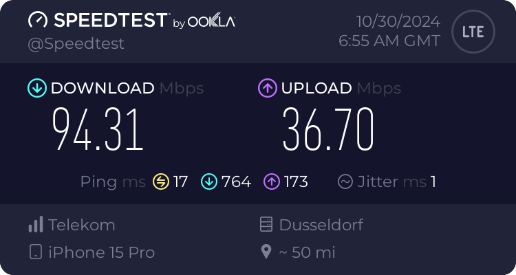 Probier mal bitte in den Einstellungen nur LTE einzuschalten und dann mach noch mal einen Speedtest bitte.