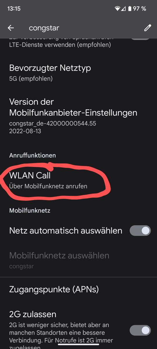 Ich habe WLAN Call aktiviert, nur wird leider das Telekom Netz bevorzugt.