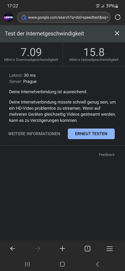 Seit gestern Abend habe ich das Problem das mein LTE nur noch max. 2Mbit liefert, anstatt der üblichen 30Mbit. Wann der Fehler genau entstand, weiß ich nicht, da ich erst zum Feierabend in Genuss des langsamen LTE kam.