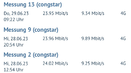 die beiden unteren Messungen sind von gestern, die erste Messung im Screenshot ist von heute. Dazwischen habe ich das Telefon auch mehrmals ausgeschaltet, neu gestartet etc. Insgesamt habe ich heute 6 Messungen vorgenommen (von kurz vor 8 bis gerade eben) und alle mit dem gleichen Ergebnis.