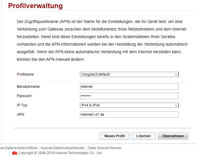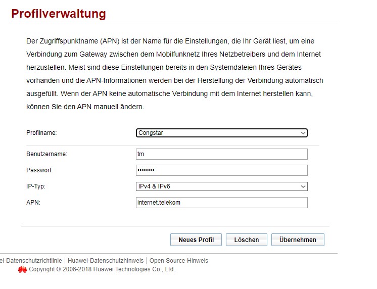 Also SIM Karte rein und erstmal schauen was passiert, leider kein Internet ohne etwas zu tun ;) Also hier alles gewälzt und mich erstmal versucht an der Anleitung für ein anderes Huawei Gerät zur orientiern Der congstar WLAN-Cube