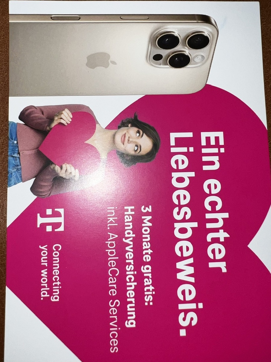Die beigelegte Karte ist von der Telekom - Aktion „ein echter Liebesbeweis“ (Insure MyMobile Apple Promotion)