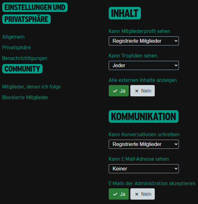 Auf dem dritten wie das ganze in meinen Einstellungen unter "Einstellungen & Privatsphäre" aussieht.